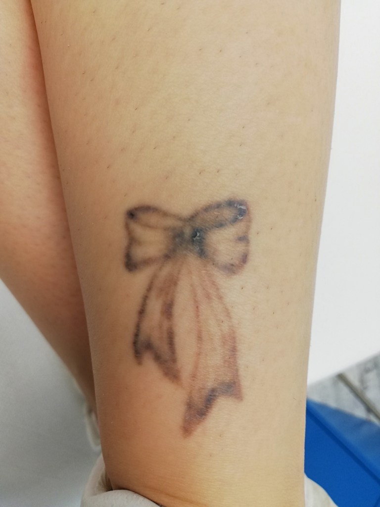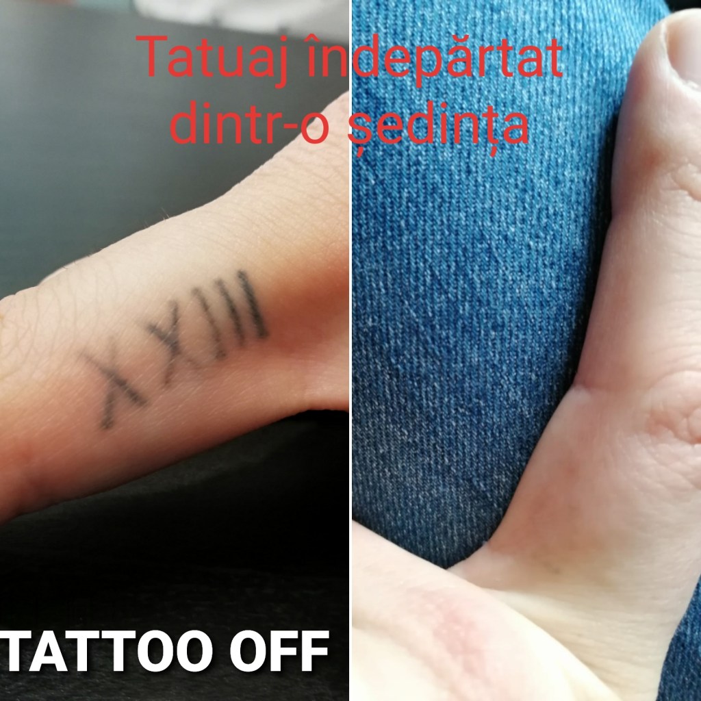 Tatuajele sunt pe viață! Asta-i problema. Introducem ușor ceva in organism, dar este dificil sa extragem rapid, fără semne și miraculos. Am avut cazuri de tatuaje care din prima au fost îndepărtate miraculous (diferenta o face adancimea si compozitia chimica a pigmentului). Dar acestea sunt excepții. Am întâlnit și tatuaje încăpățânate. Cu rezultate slabe și multe sedinte. Pot spune că cei perseverenți au ajuns într-un punct satisfacator (Exemplu: 20 de ședințe la un alt operator – imagine funda). Dupa 7 sedinte la noi a fost admisa unde isi dorea sa ajunga. O persoana perseverenta si serioasa care a reusit. Fiecare sedinta contează. Și cele fara rezultate și cele cu rezultate slabe, “pun umărul” ca metalul din pigment sa cedeze la un moment dat. Da, pigmentii au metale in compozitie . Au fost si cazuri în care primele 2 sedinte nu au avut nicio diferență. La a 3-a sedinta rezultate slabe și în alte 3 a dispărut miraculos. Alt exemplu: un tatuaj pe același brat. Realizat in acelasi timp si de acelasi artist tatuator. Un tatuaj făcut din doua părți (o bicicletă împărțită). Jumatatea de pe biceps s-a dus 40% după prima ședință, insa jumatatea de pe triceps, nicio diferență. Fiecare tatuaj este unic!